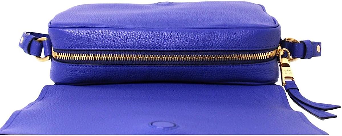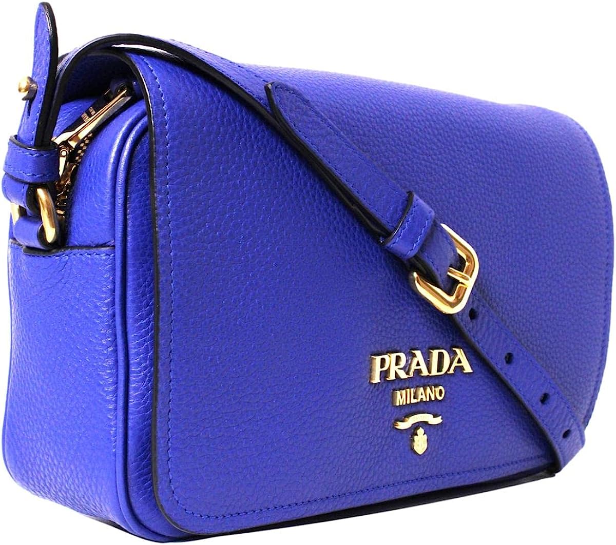 Prada Men's Vitello Phenix Royal Blue Leather Flap Crossbody Bag 1BD163