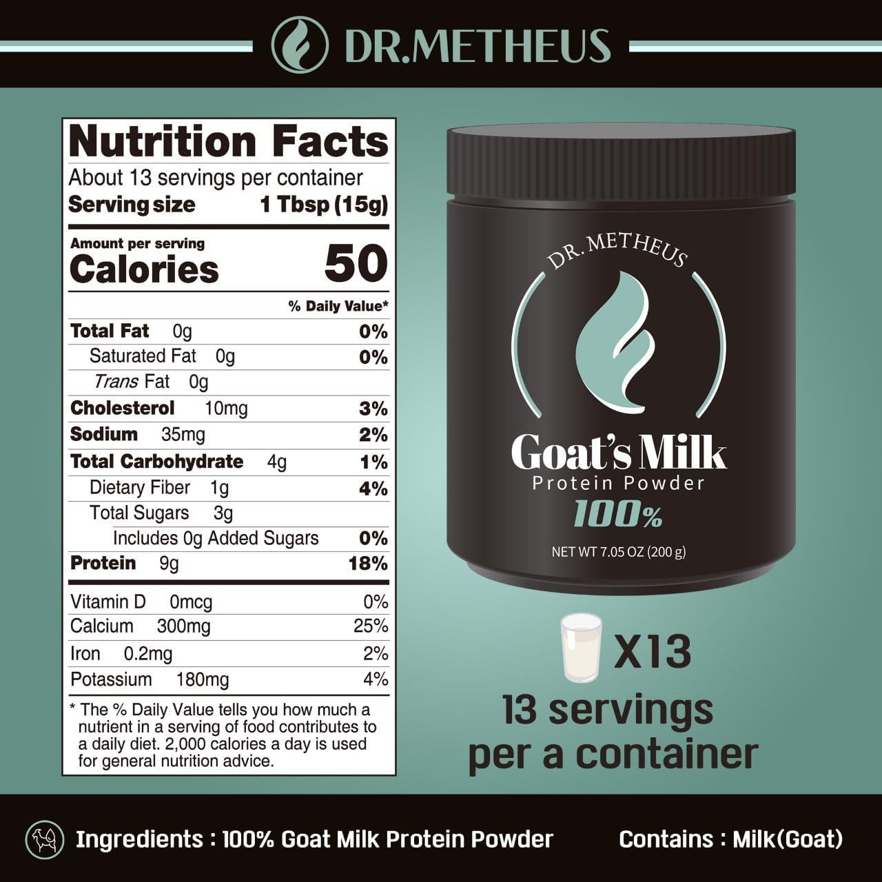• ALL THE INGREDIENTS FROM 100% NETHERLANDS NATURE : Dr. Metheus Goat Milk Protein Powder is high-quality organic whole food certified as Quali-goat. There are no additives, antibiotics, growth hormones, and non gmo(non-GMO).
