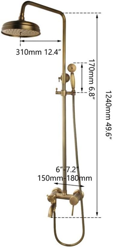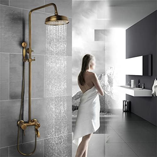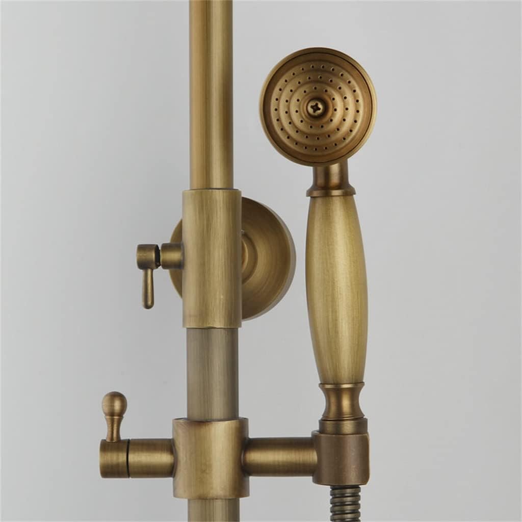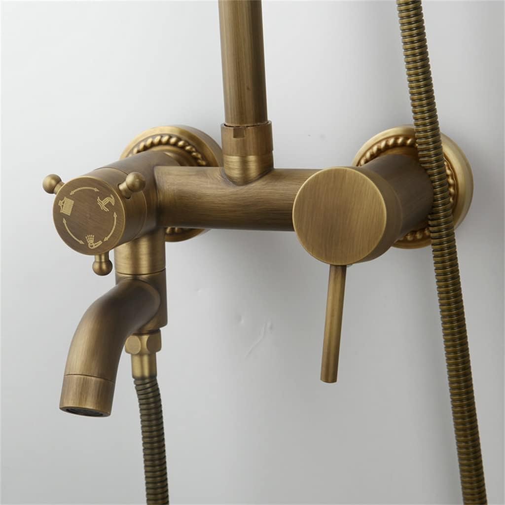 ZSQAW Brass Shower Faucets Set Wall Mount Antique Brass Shower Kit Dual Knobs Mixer Tap Handheld Spray