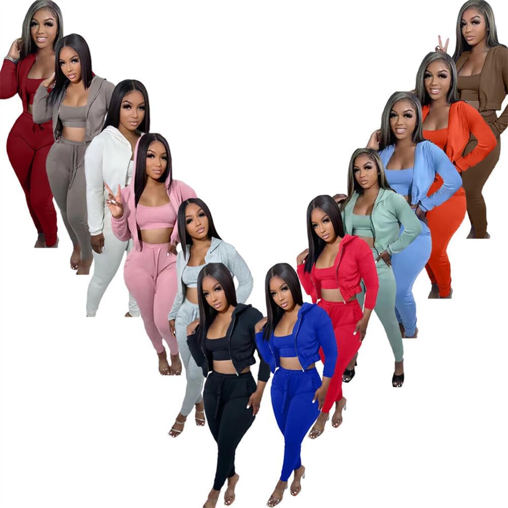 QueenLine 10sets Bulk Items Wholesale Lots Winter Clothes for Women 3 Piece Set Long Sleeve Coat Vest Pants Casual Sport Wear Blue L
