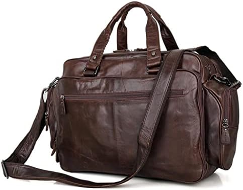 DLOETT Functional Travel Bag Men Leather Tote Bag Business Casual Laptop Shoulder Bag Tote Briefcase